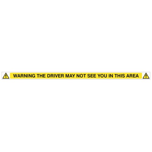This sticker is used on the sideguards of a HGV. This sticker is required for the direct vision standard for vehicles entering and operating in Greater London. The direct vision standard is a HGV safety permit for vehicles with a gross weight of over 12 tonnes.