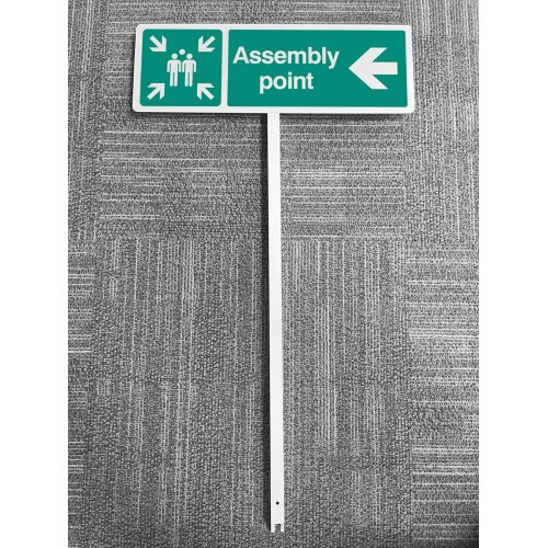 Verge signs provide a quick, easy and professional solution for information signage. It must not be assumed that once outside a building that people will know how to get to the assembly point area. Signs directing staff and visitors to the assembly area may be required. Simply sink into a grass verge using the pole spike for temporary use or set into concrete for extra stability and permanent fixture
