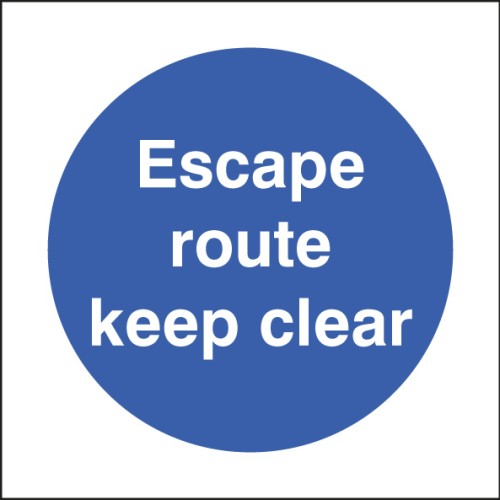 The sign also supports compliance with fire safety laws and building regulations, which require that all escape routes be clearly marked, well-maintained, and easily accessible. Regular visibility of this message helps reinforce a safety-conscious culture and encourages prompt reporting or removal of any obstacles.