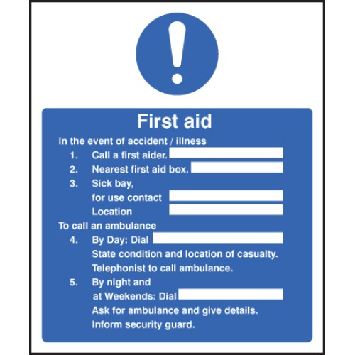 Under the Health and Safety (First Aid) Regulations 1981 (as amended 1997) employers have a legal obligation to assess and introduce first aid provisions. Any such provisions should be easy to locate