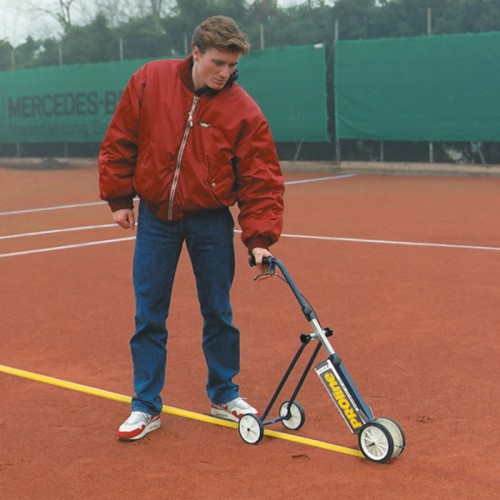 4-Wheel paint line applicator with 2 x 750ml Cans of yellow line paint and 1 x Chalk line
