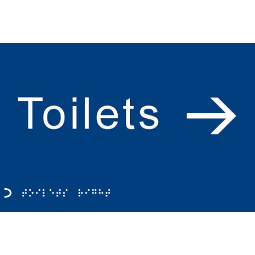 This braille toilet arrow right sign helps ensure people with visual impairment can locate toilets quickly and easily. The raised letters, symbol and braille ensures this braille/tactile sign can be read by everyone. Designed to help you meet your obligations under the DDA and Equality Act 2010. Our braille signs have an adhesive backing for easy installation.