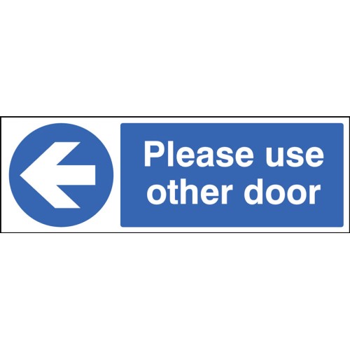 Manage the direction of children, employees and members of public with this "Please use other door, arrow left" sign.