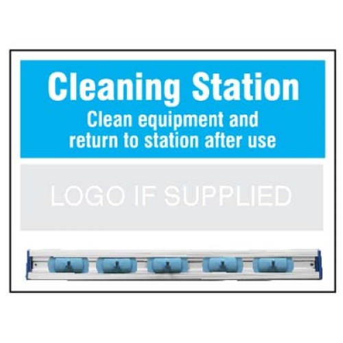 This Cleaning Station includes a 515mm channeled rail with five hangers to grip handles and tools (23m dia), keeping everything stored neatly and readily available for use.