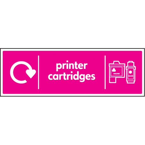 A Printer Cartridges - WRAP Recycling Sign is important for clearly identifying the designated area for collecting used printer cartridges. This sign helps ensure cartridges are disposed of separately from general waste, preventing environmental contamination from ink and plastic components.