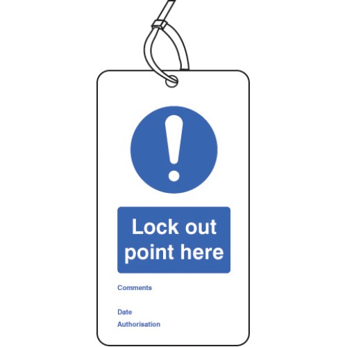 Lockout Tag - Lock Out Point Here - 80 x 150mm (Pack of 10)