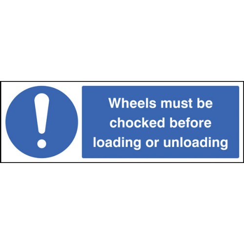 The sign also promotes safe working practices by reminding personnel to follow proper procedures, reducing the likelihood of workplace accidents and damage to goods. Consistent use of wheel chocks contributes to a safer and more efficient loading environment.
